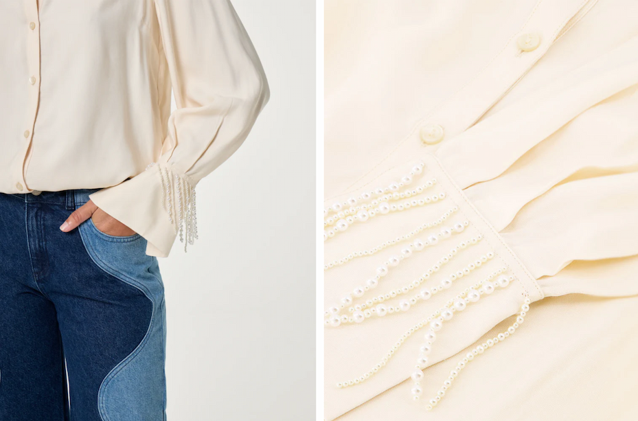 STYLE NOTE: This beautiful blouse from Fabienne Chapot features delicate pearl details on the cuffs. A great way to add a little something extra to your outfit!
