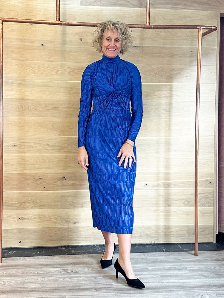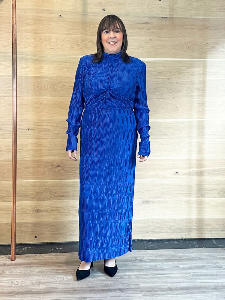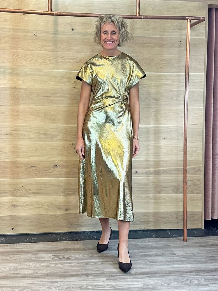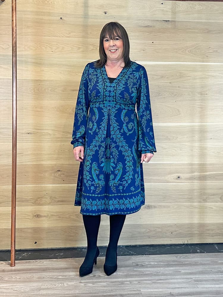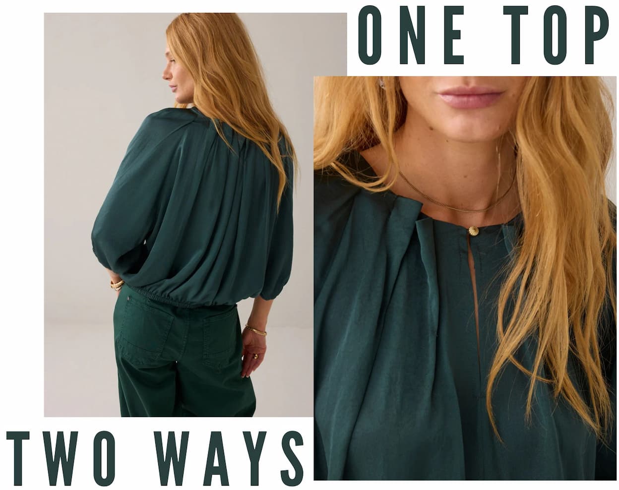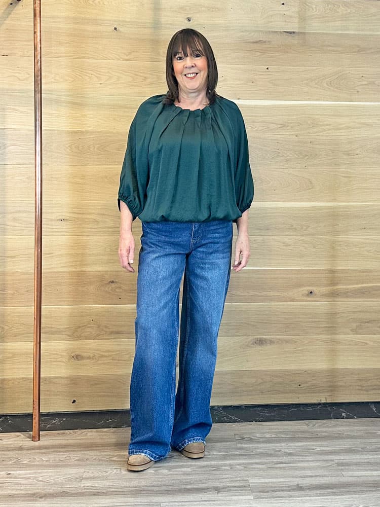 STYLE NOTE: This gorgeous green blouse from Summum can be worn with the button fastening at the front or back! Berni has styled hers with the button at the back to give a higher neckline.