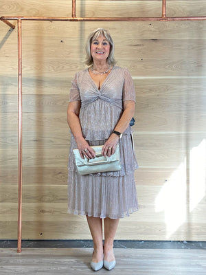Adrianna Papell Metallic Mesh Tier Dress Taupe