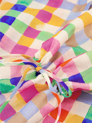 This blouse features a colorful squared pattern, perfect for casual days. Lightweight and comfortable, it adds a cheerful pop of color to any outfit while keeping your look fresh and effortless. Pair it with shorts, linen pants, or a simple skirt for relaxed styling.