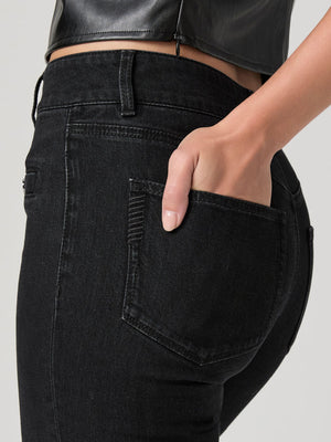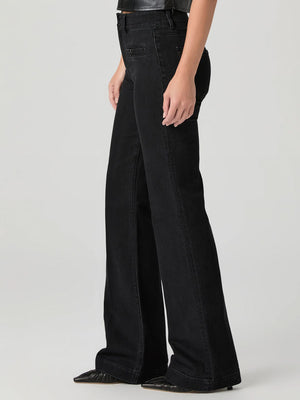 This 90s-inspired sleek wide leg is designed with a high-rise and a flattering bow leg silhouette. This style is cut from PAIGE VINTAGE denim in a vintage-inspired black wash with a wide waistband, double buttons, welts and shiny gunmetal hardware. PAIGE VINTAGE takes all the work out of breaking in your favourite pair of vintage jeans. We've combined the comfort of stretch with everything you love about authentic vintage denim to create super soft jeans that feel perfectly lived-in from the very first wear.