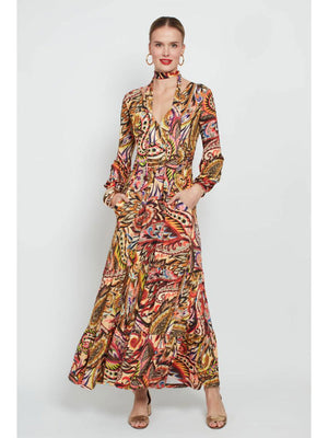 The Faye dress is Onjenu's much-loved maxi dress for a special occasion and holiday style! A super flattering style with a v-neckline, double ruched waistband and full maxi skirt that will have you floating across the room looking and feeling amazing! It comes with a necktie that can also be worn as a belt. And Yes, has pockets too!!