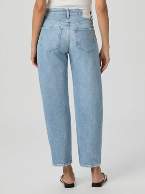 Alexis is Paige's feminine take on the barrel leg while still creating a flattering fit. This high-rise silhouette is crafted from PAIGE VINTAGE denim in a lived-in light blue wash with true vintage character. PAIGE VINTAGE takes all of the work out of breaking in your favourite pair of vintage denim jeans. They've combined the comfort of stretch with everything you love about rigid vintage denim to create super soft jeans that feel perfectly lived-in from the very first wear.