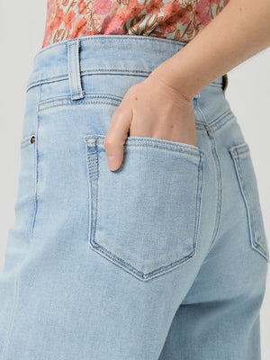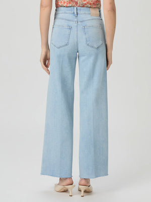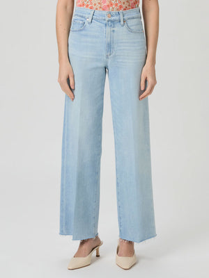 This modern high-rise wide leg has a slightly relaxed fit and a 31" inseam. This pair is crafted in TRANSCEND VINTAGE denim in a lived-in light blue wash with a raw hem and has the look of authentic vintage denim but is incredibly comfortable with plenty of stretch and recovery.