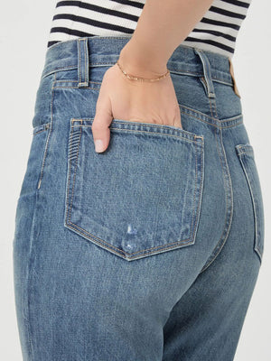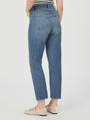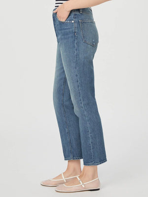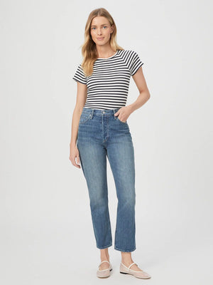 The Billy Crop is the newest high-rise slim straight leg with a cropped ankle-length silhouette from Paige. This pair is cut from their new Compact Feminine Rigid denim in a light vintage-inspired wash with natural fading and lived-in details. Due to a tighter construction, this new denim fabrication has a more subtle texture with a softer finish while still maintaining character and shape.