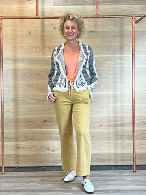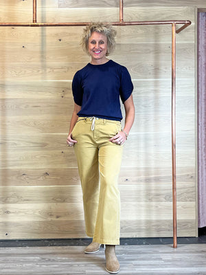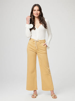 This high-rise wide-leg pant has an ankle-length silhouette, slightly slanted pockets, dart styling on the back and a tie waist. This effortlessly chic style in Vintage Golden Glow will be your new must-have for casual, off-duty day