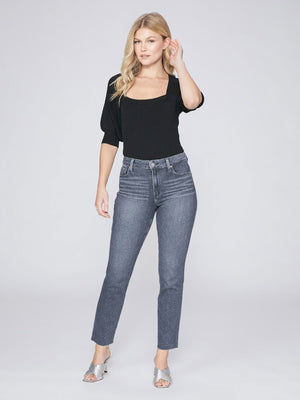 These high-rise, perfectly straight jeans are lean through the leg and finish at the ankle with a raw hem. This pair is cut from PAIGE Vintage denim in a grey wash with whiskers and a marble texture. PAIGE Vintage takes all of the work out of breaking in your favourite pair of vintage jeans. We've combined the comfort of stretch with everything you love about authentic vintage denim to create super soft jeans that feel perfectly lived-in from the very first wear.