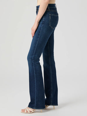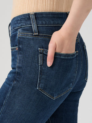 A universally flattering high-rise style with a fitted silhouette through the hips and thighs, a slim bootcut from the knee down and a slightly shorter 32" inseam. This pair is crafted in PAIGE VINTAGE denim in a vintage-inspired dark wash with subtle aged details. PAIGE VINTAGE takes all of the work out of breaking in your favourite pair of vintage jeans. Paige have combined the comfort of stretch with everything you love about authentic vintage denim to create super soft jeans that feel perfectly lived-in from the very first wear.