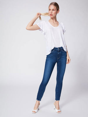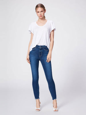 The Margot jeans from Paige offer an ultra high rise, skinny fit. The Acoustic distressed wash use intricate distressing details to really achieve that lived-in look. Cut from our their transcend Vintage denim, this style has the look of authentic vintage denim but is incredibly comfortable with plenty of stretch and recovery. Style up or down as much as you like, these jeans will be your go-to pair!