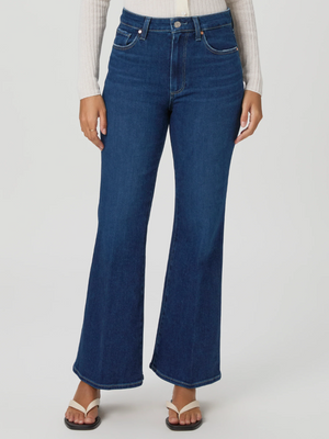 The Marlow Skimmer is designed to graze the top of the foot with a flare and can be easily paired back to flats or sandals. This pair is crafted from Paige's TRANSCEND VINTAGE denim in a rich dark wash with natural fading. This style has the look of authentic vintage denim but is incredibly comfortable with plenty of stretch and recovery.