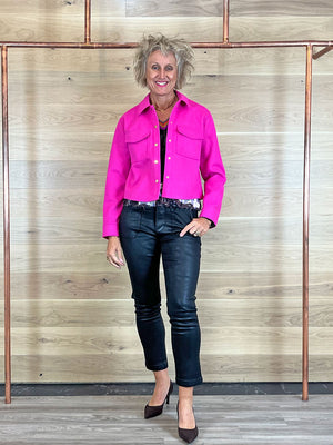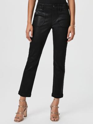 The Paige classic Mayslie gets a fresh update this season as a mid-rise straight leg with utility patch pockets in a classic black that has a leather-like look but doesn't sacrifice comfort.