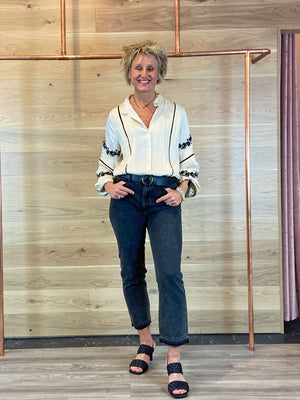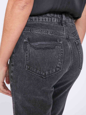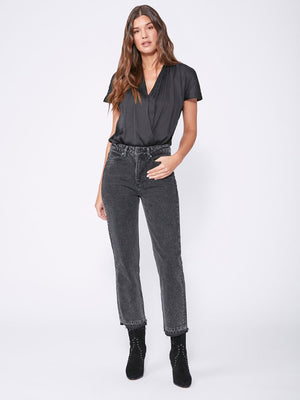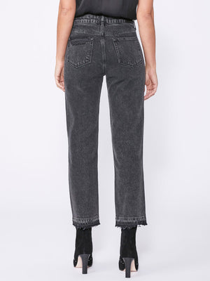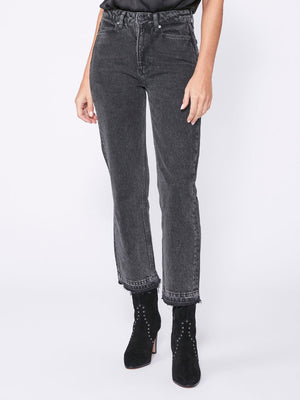 The cult-favorite Sarah Straight is back this season in the perfect washed down black cut. This high-rise straight leg hits at the ankle and is detailed with an undone hem, a torn away back pocket and a cool vintage wash that looks like it's been worn for years.