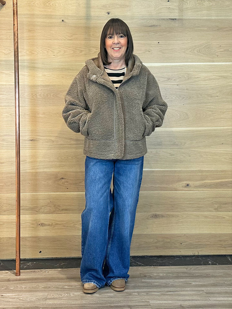 Rino & Pelle Felicia Hooded Faux Sherling Coat Toffee