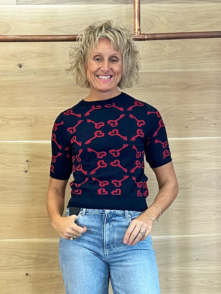 Made in stretchy metallic-blend textured fabric. Featuring a round neckline and long sleeves with dropped shoulders. Ribbed neck, cuffs and bottom hem. Loose fit.