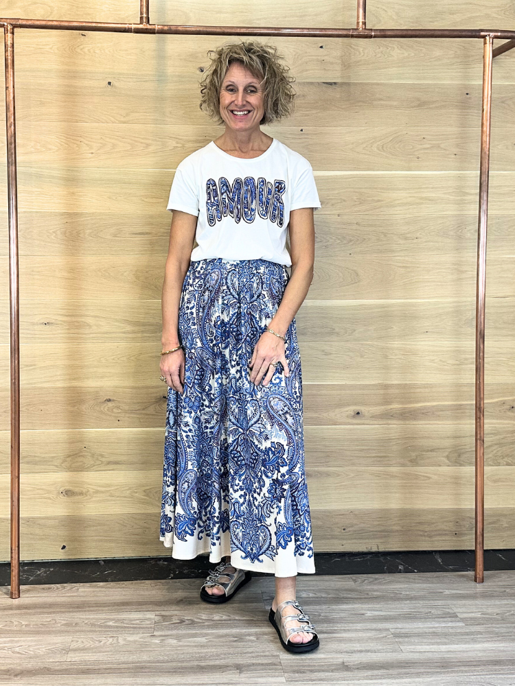 Maxi skirt with large attractive paisley print