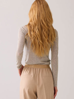 This fitted long-sleeved top is made from an Italian, semi-transparent melange jersey fabric with lurex for a subtle shimmer.
