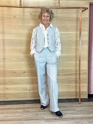 Yasriu High Mid Waist Trouser Light Grey Melange