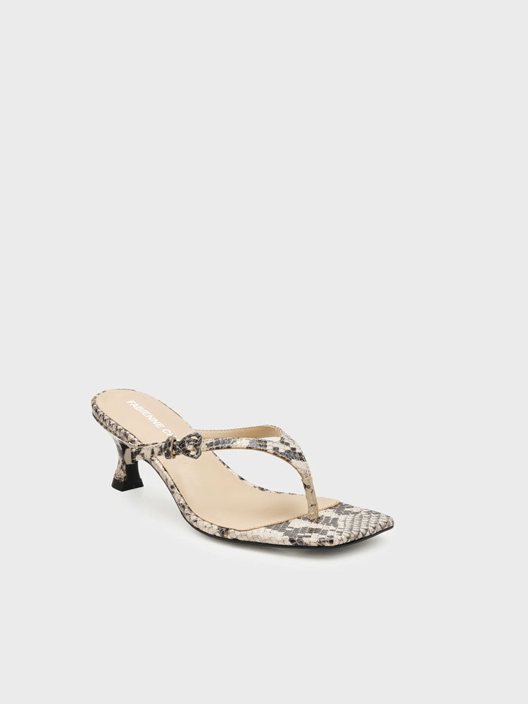 Elevate your summer style with the Fifi Flipflop Heels, crafted from 100% sheep leather and finished in a striking snake print. Combining a sleek shape with a modern heel, they offer an effortless way to refine both casual and dressed-up looks.