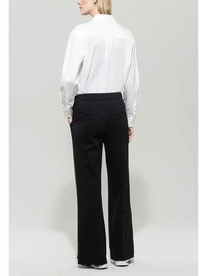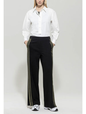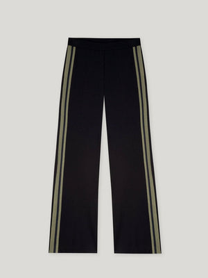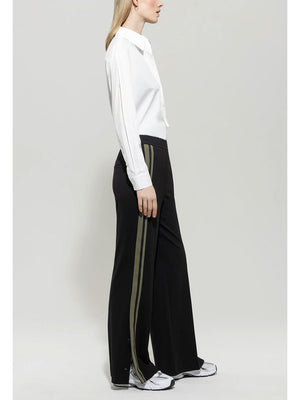 Track pants in a wide-leg silhouette made from technically flowing Punto Milano fabric with a partially elasticated waistband and two side pockets. A contrasting band adorns the side seams and there is also a press stud placket at the hem.