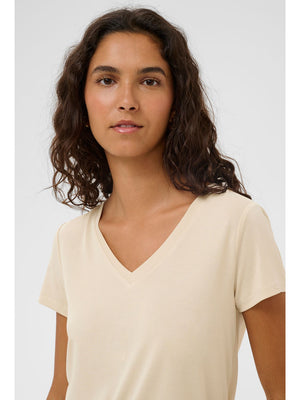 Soaked SLColumbine V-Neck Short Sleeve Top Oatmeal