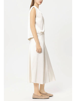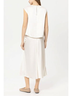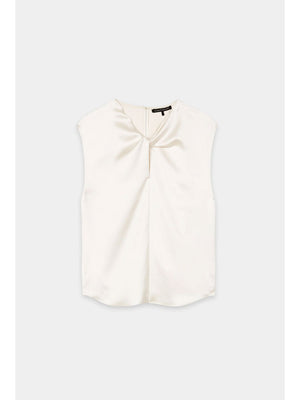Sleeveless top in a heavy, flowing satin fabric with draped knot detail at the neckline. The elegant look is emphasised by a casual cut with open laser-cut seam details.